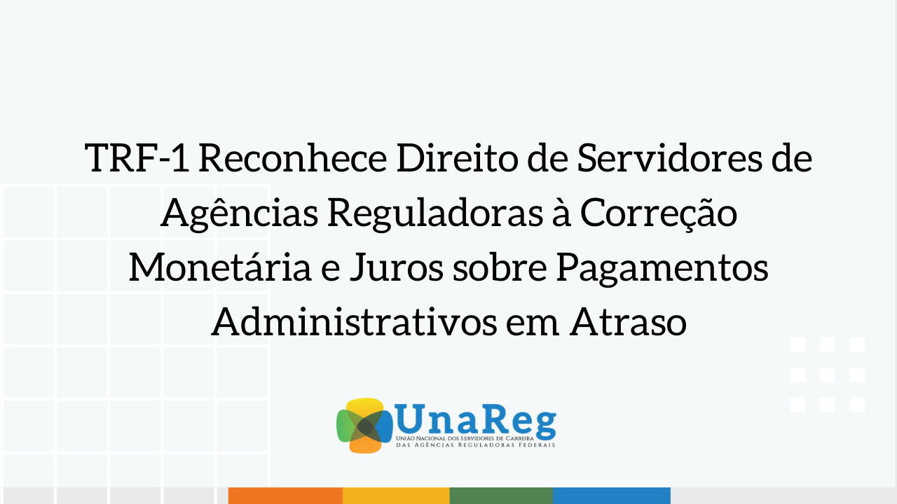 O Tribunal Regional Federal da 1ª Região (TRF-1) decidiu, por unanimidade, que servidores efetivos das agências reguladoras federais têm direito à incidência de correção monetária e juros moratórios sobre verbas remuneratórias reconhecidas administrativamente e pagas com atraso. A decisão foi proferida em apelação cível interposta pela Associação Nacional dos Servidores Efetivos das Agências Reguladoras Federais (UnaReg), representada pelo escritório Fonseca de Melo & Britto Advogados.